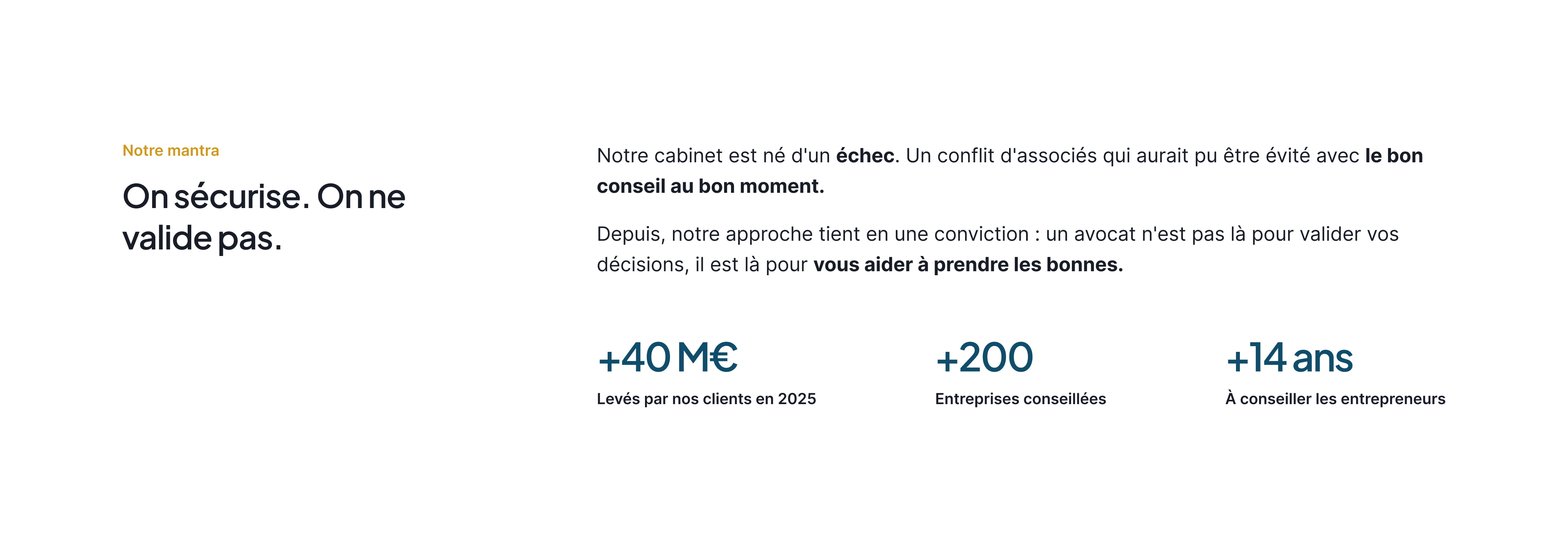 "Nous accompagnons les entreprises de toutes tailles, de la startup au grand groupe, dans tous leurs besoins juridiques."
